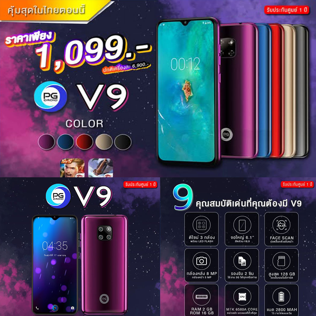มือถือ PG Mobile V9 ทุกรุ่นพร้อมประกันศูนย์ไทย